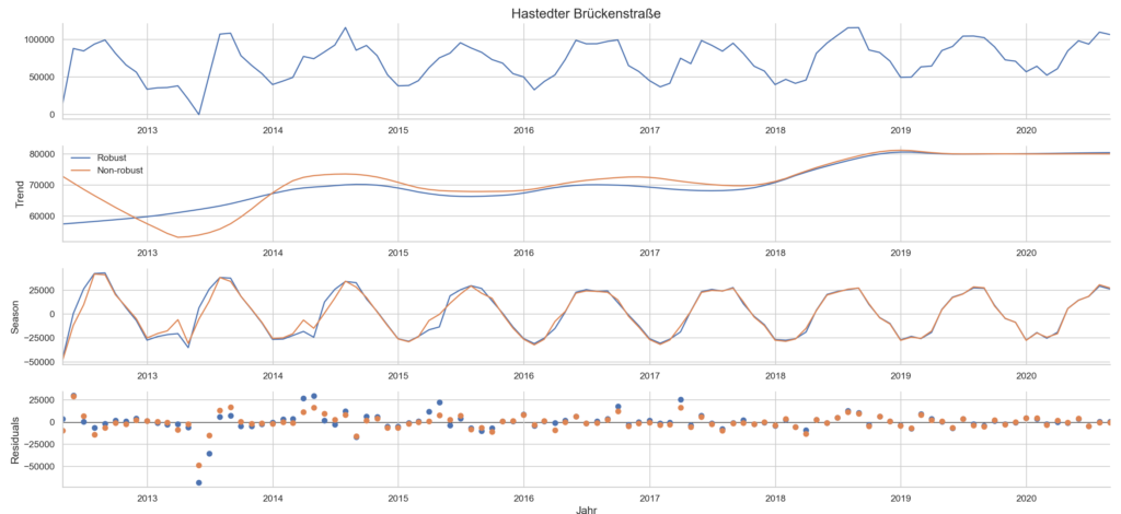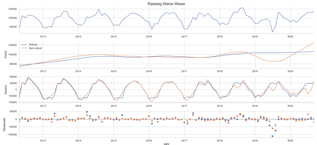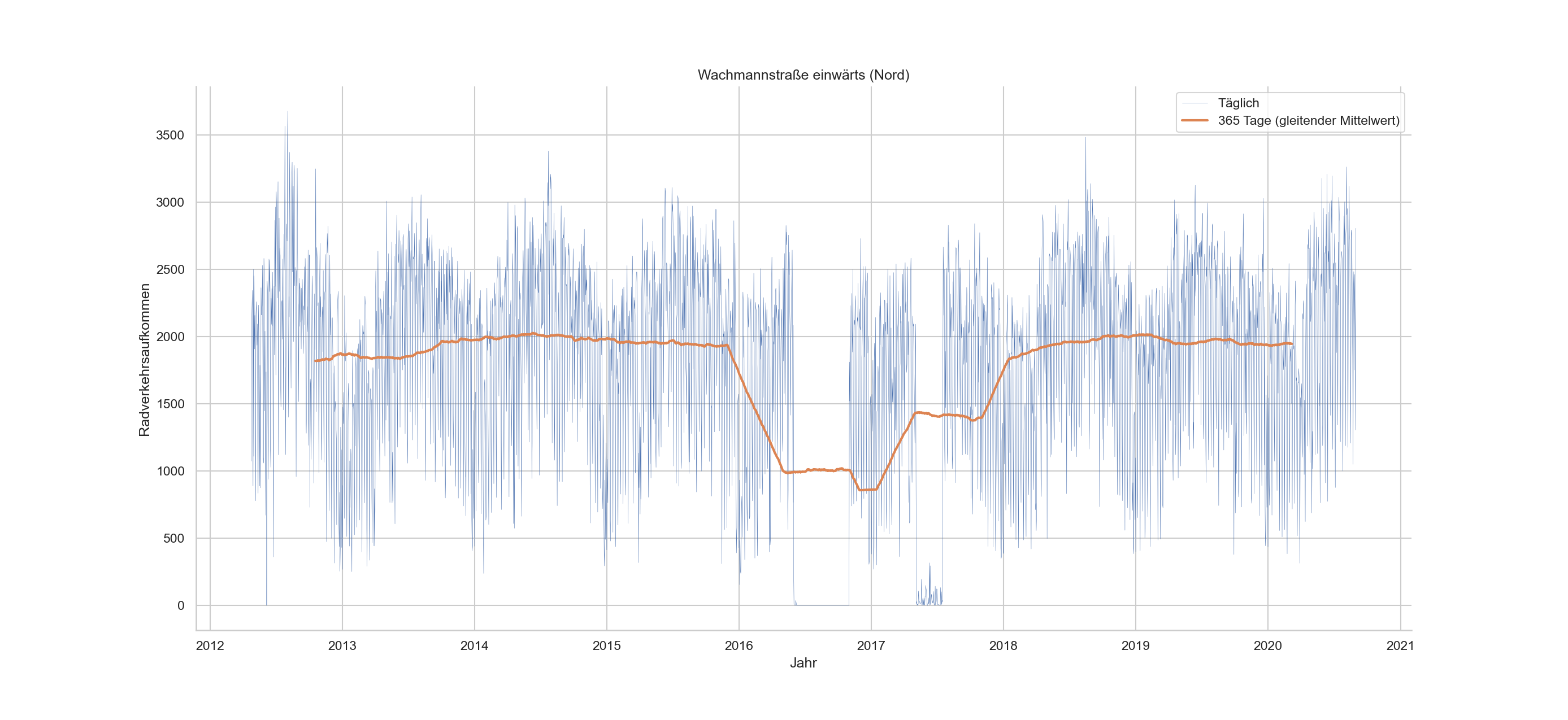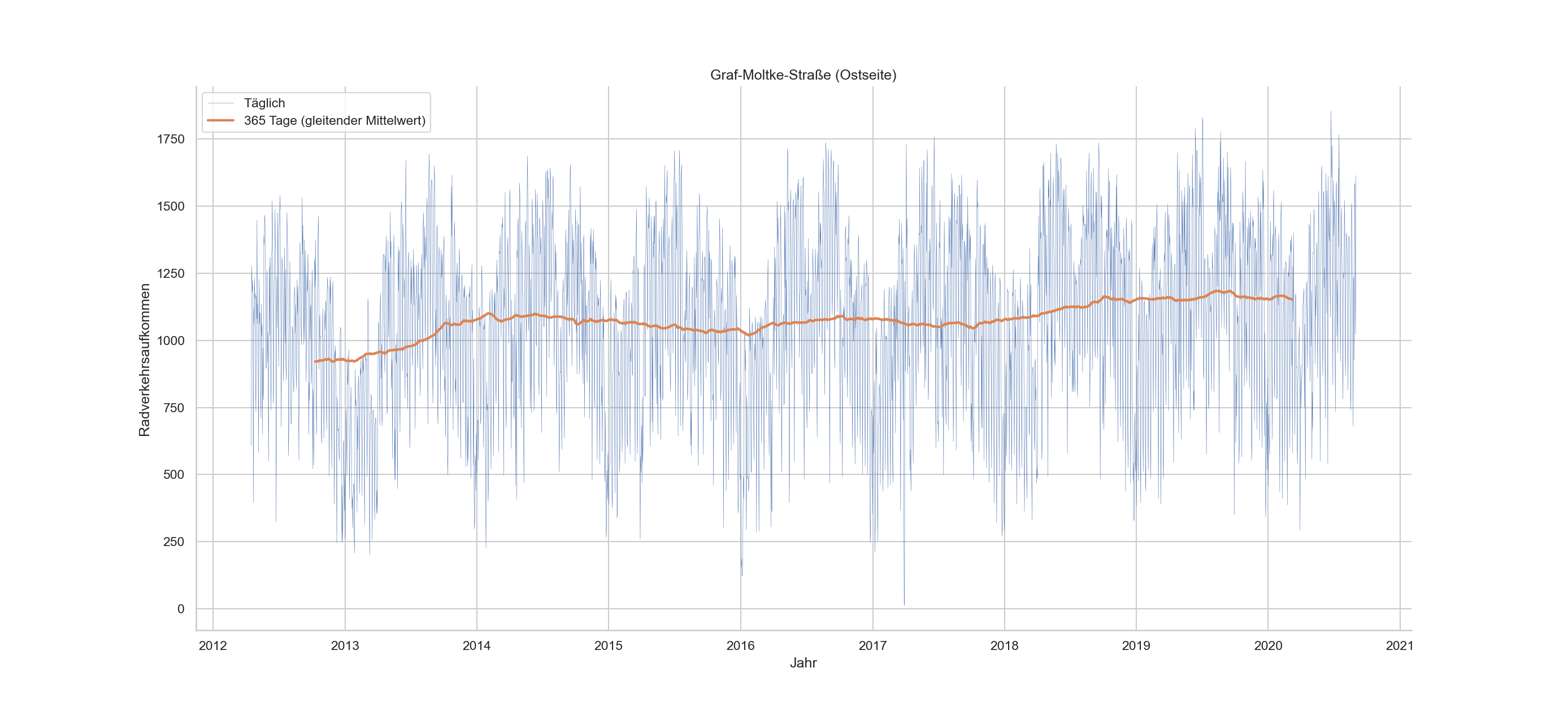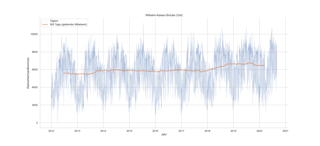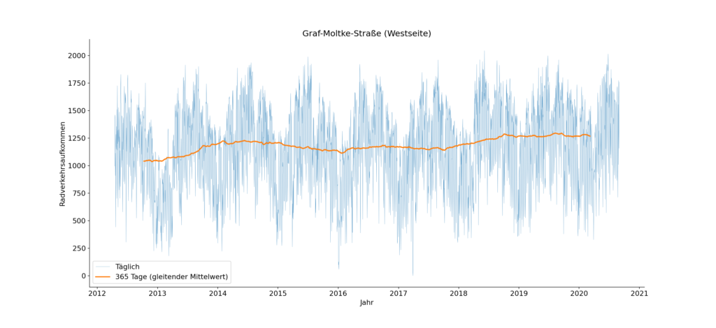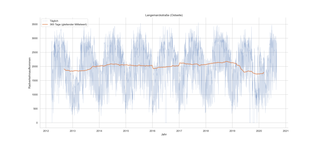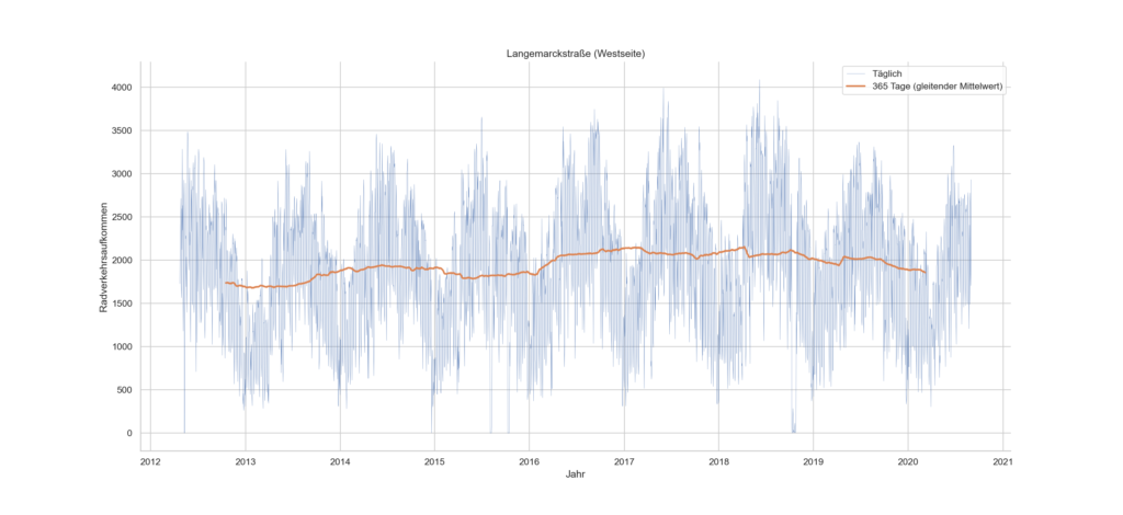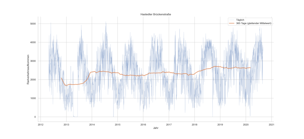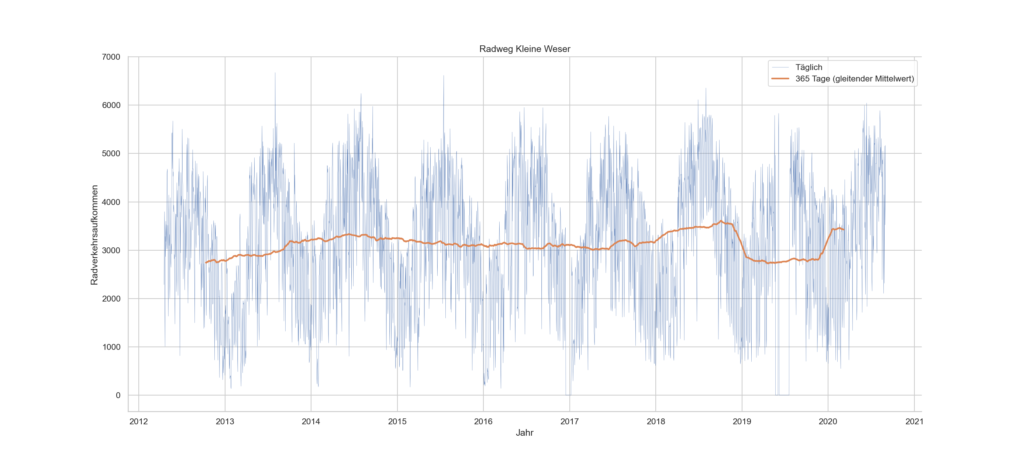 In diesem Artikel verzichte ich auf den Python Code und poste ausschließlich Diagramme auf Grundlage der Daten der Radzählstellen in Bremen vom 1. Januar 2012 bis zum 1. September 2020.